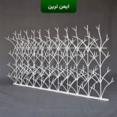 اما در حفاظ روی دیوار شاخ گوزنی، هر شاخه اصلی دارای شاخه های فرعی با نوک های بسیار تیز است. نوک این شاخه ها با زاویه بسیار کم برش داده شده که به موجب آن حالت برندگی و تیزی فراهم می کند. در نتیجه فرد متجاوز امکان گرفتن شاخه ها را ندارد. از طرفی شاخه های درهم تنیده این نرده فضای خالی را پر کرده و رد شدن از مابین و یا از روی آن ممکن نخواهد بود. درنتیجه قطعا بهترین گزینه حفاظ های شاخ گوزنی خواهند بود که ضریب امنیتی بالایی دارند.